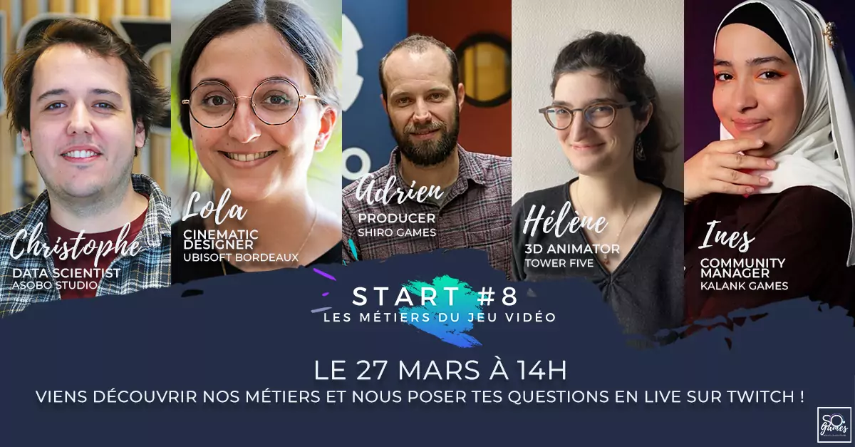 Le 27 mars dernier, nous avons eu la chance de diffuser l’émission START sur Twitch, pour la 4ème année consécutive ! Ces ateliers, créés en 2018, ont pour vocation d’accompagner les élèves des collèges et lycées dans leur orientation vers les métiers du jeu vidéo.